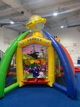 The World of Sports party includes the use of our super large, 5 sports station commercial grade inflatable. Sport stations include baseball, basketball, soccer, football and frisbee. For the first 25 minutes children enjoy open play, then 25 minutes of birthday festivities and then we come down for the remainder of the party to participate in a structured sports program. Two coaches rotate two groups around the circuit. This option is best suited for 4 years and up.